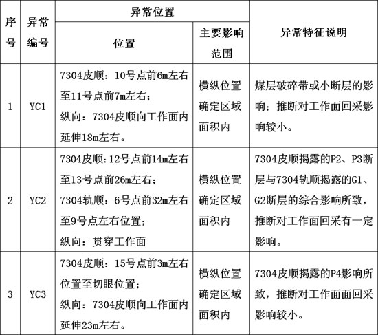 表4-1 7304工作面槽波透射勘探地质异常解析表见表