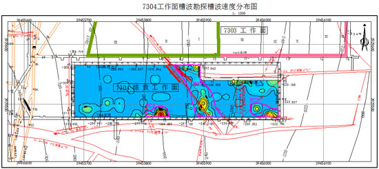 图4-1 7304工作面槽波速度分布图