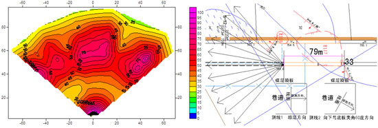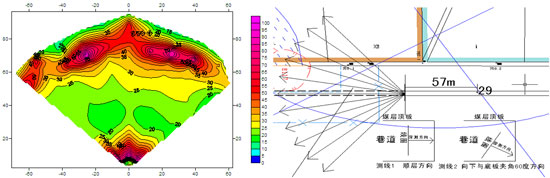 在某矿多年的跟踪物探工作中大量物探成果的积累表明,瞬变电磁仪YCS512探测对于前方煤层变化(陷落柱、2米以上断层、煤层起伏5°以上)经常出现相对高阻异常区。因此可以验证瞬变电磁仪YCS512对于探测范围内的煤层变化也是有很好的判断作用的。