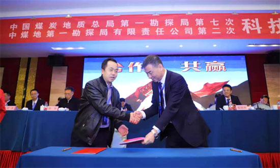 中国煤炭地质总局第一勘探局党委书记、局长冀涛与我公司董事长陈春江共同签署了战略合作协议。协议双方将共同遵守优势互补、互利共赢的原则,就矿山全生命周期地质保障服务服务、地质灾害治理、监测监控类产品应用与研发、物联网系统建设等方面深入加强合作。