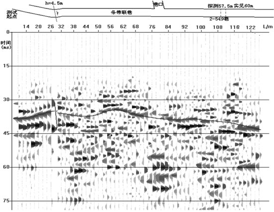 概况:山西霍州矿业集团某矿联巷不同位置巷道分别揭露落差为6-9m大断层,为判定其未揭露区前方延伸状况,设计采用单道最佳偏移距法,偏移距选定为20m,移动步距为2.0m,共进行了130m段帮内数据采集。