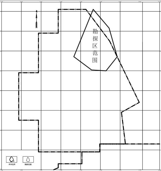 图1-2-1 勘探区范围示意图(实线圈为圈定范围)