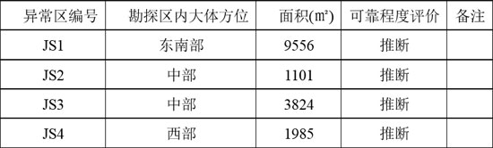 本次勘探共解释9+10#煤层积水异常区4处,编号为JS1~JS3,总面积约16466㎡。