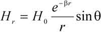 无线电波透视法又称坑透法。井下煤层为近均匀、各向同性介质,当采用长度小于波长的短偶极子天线在一条巷道向煤层中发射电磁波(偶极子天线辐射场见图1,并使其在地下煤岩层介质中传播时,在距辐射源距离 r处的电磁场强度为Hr ,见公式(1),在另一条巷道的接收天线接收的是发射机所发射的电磁波在水平方向上电磁波的一个分量,且因为地下各种岩、矿石介质的电性(电阻率和介电常数等)不同,介质对电磁波能量吸收程度不同,地下煤层与岩层相比表现为相对高阻,低阻(高电导率)岩层对电磁波具有较强的吸收作用,当电磁波传播过程中遇到断层、火成岩、陷落柱等地质构造所出现的物性差异界面时,电磁波会在异常界面上发生不同的反射与折射作用,也造成电磁波能量的损耗,从而导致接收巷道中的电磁波信号十分微弱甚至无法接收到透射信号,形成所谓的透射异常(又称阴影异常)。通过分析回采工作面煤层、地质构造及地质体对电磁波的影响所造成的各种无线电波透视异常,进而进行地质规律推断与解释,这就是无线电波透视法的基础原理。