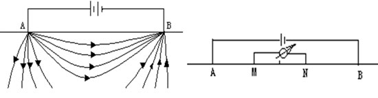 图2-1 地下稳定电流场装置图 图2-2 对称四极装置图