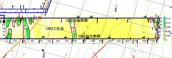 图6-3 1802工作面槽波地震与无线电波透视重合探测区域探测成果解