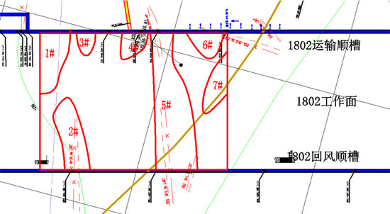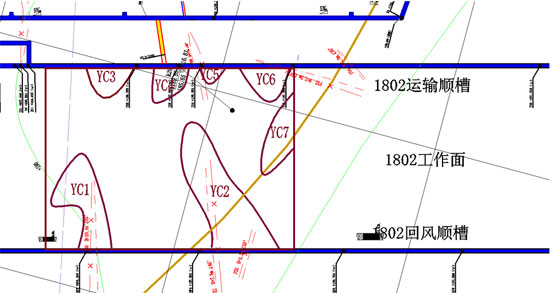 (1)采用无线电波透视勘探对1802工作面内部地质构造发育情况进行探查。