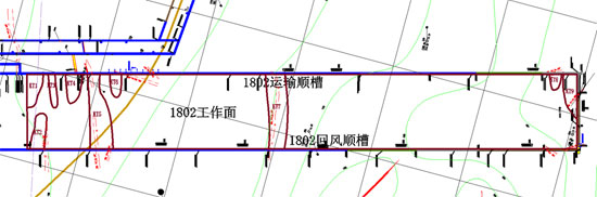 (2)槽波地震勘探主要探测范围为1802停采线至停采线以里330m段范围,主要探查断层F29、F30、F31、F35在面内的延伸情况以及其它可能存在的隐伏构造发育情况。