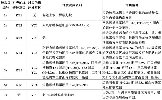 表6-1 1802工作面无线电波透视探测综合地质异常解释表