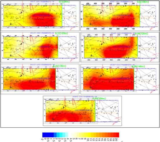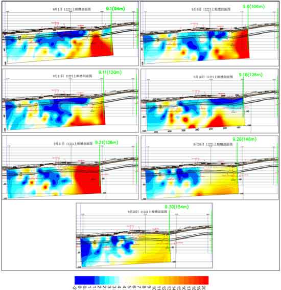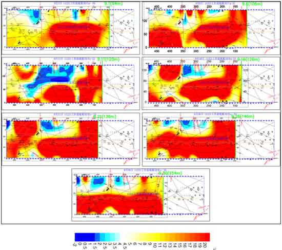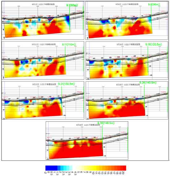 图4-3 11221工作面底板浅部40m段电阻率反演切片(9.1~9.30)
