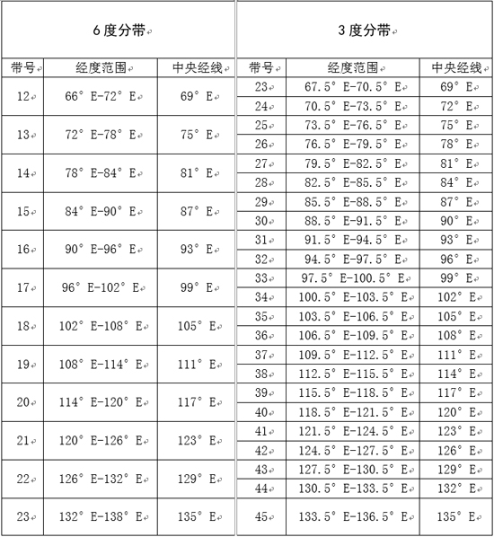注:中央经线根据坐标带号而定,3度分带38即38*3=114,即中央经线为114°E;6度分带19即19*6-3=111,即中央经线为111°E。