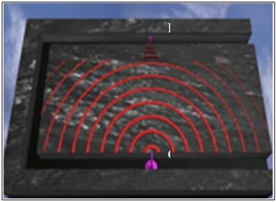 无线电波透视是用来探测顺煤层两煤巷、两钻孔或煤巷与钻孔之间的各种地质构造异常体。发射机与接收机分别位于不同巷道或钻孔中,同时做等距离移动,逐点发射和接收。或发射机在一定时间内相对固定位置,接收机在一定范围内逐点观测其场强值。
