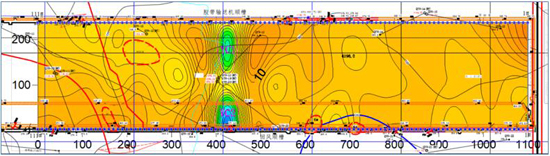 图4-5 某工作面底板音频电透视法探测0-50m视复电导率分布成果图