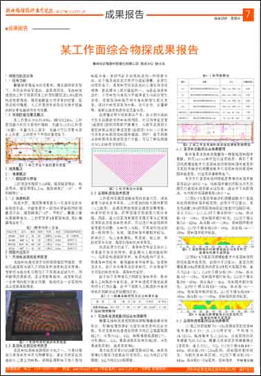 采用音频电穿透法、直流测深法、无线电波透视法三种手段查明某工作面切眼后退1100m面内构造发育情况,煤层底板富水性异常的位置、范围及相对强弱,为工作面开采前防治水技术措施的制定和实施提供参考依据。