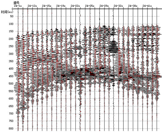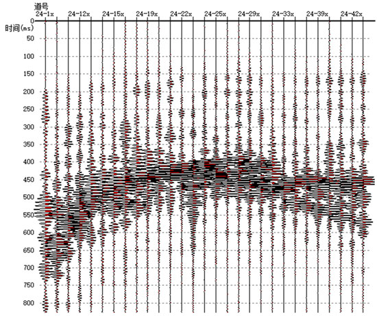 图4-5 XX带式输送机顺槽第24炮单炮地震道槽波信号提取后地震记录