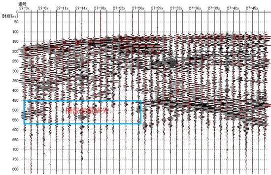 图4-6 XX带式输送机顺槽第23炮透射槽波单炮记录图(去坏道后)