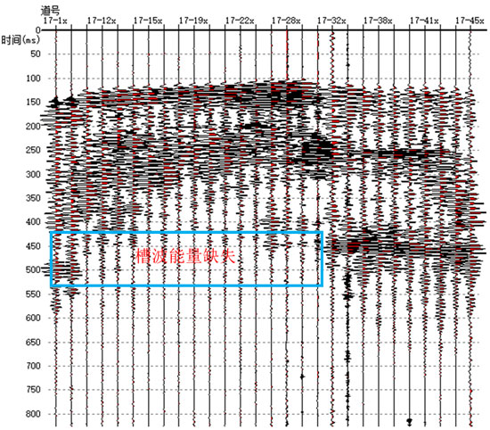 图4-7 XX辅助运输顺槽第17炮透射槽波单炮记录图(去坏道后)