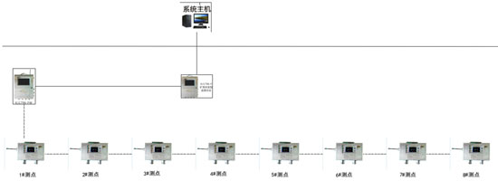 1102工作面共有64个综采液压支架,设置了8个测点,间距平均分布,每个测点连1个综采液压支架,分站的主机采用通道液压管和支架的支柱连接,主机与主机之间采用电源线连接,最后通过光纤与地面电脑连接。所观测的数据在线传送到XX煤矿煤矿地面调度室、地面区队、地面技术科、地面总工程师室。技术人员可以随时观测和分析数据,把异常数据随时反馈到上级领导那里,进而有效指导生产。