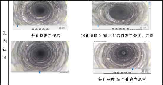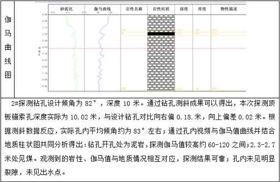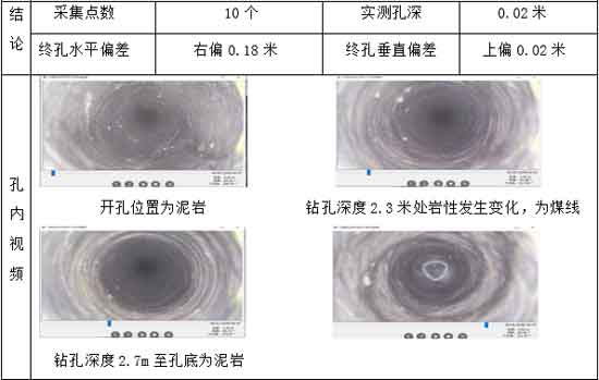 针对本次探测与后期巷道掘进三个月期间对钻孔的实时观测,顶板结构完整,孔内裂隙无变化,未见出水点。建议保留观测孔,定期重复观测顶板是否发生断裂。