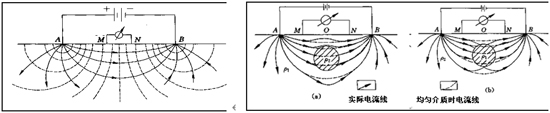 将直流电源的两端通过埋设地下的两个电极A、B向大地供电,在地面以下的导电半空间建立起稳定电场。该稳定电场的分布状态决定于地下不同电阻率的岩层(或矿体)的赋存状态。所以,从地面观察稳定电场的变化和分布,可以了解地下的地质情况。