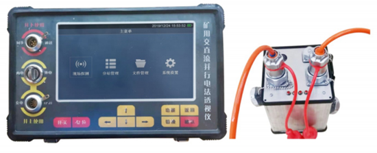 本次并行直流电法与音频电透视法选用福州华虹智能科技股份有限公司生产的“YBT96矿用交直流并行电法透视仪”,该仪器是一款采用先进的分段集中式架构实现的综合电法透视系统,可实现多种电法勘探观测数据的同步采集:双巷高密度并行电透、工作面多频并行电法透视等。是一款满足一次施工完成多种电法勘探的工作面全方位电法透视装备。