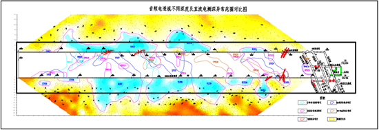 图4-4 音频电透视不同深度及直流电测深异常范围对比图