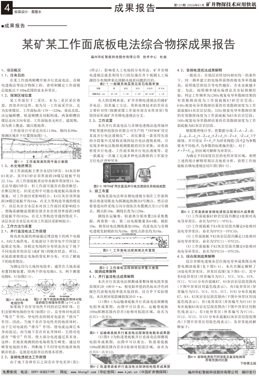 在某工作面两顺槽开展并行直流电法、音频电透视法等综合物探工程,查明和圈定工作面煤层底板以下100m范围的富水异常区。