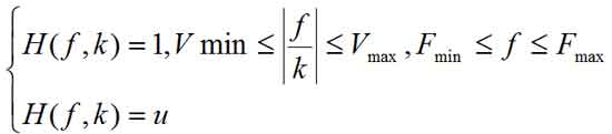 此时根据信号的频率和视速度的性质设计出不同的滤波器,保留所要提取的目标信号,达到滤波的目的。在F-K域中,根据不同的目的可设计多种滤波器。本文选用了扇形带通滤波器。滤波因子公式如下: