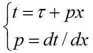 ①(t,x)域中的点经变换后在(τ,p)域中为一条直线;