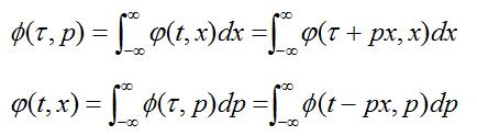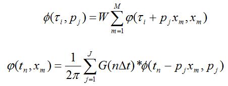 设(t,x)域的二维信号φ(t,x),经转换到(τ,p)域后的二维信号为φ(τ,p),则τ-p的正反变换公式为: