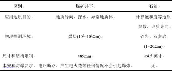 表1 矿用随钻探测仪器与石油行业仪器的区别