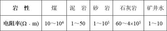 由于地下各种岩石之间存在导电差异(表2-1所示),影响着人工电场的分布形态。矿井音频电透视法就是利用专门的仪器在井下观测人工场源的分布规律来达到解决地质问题的目的。