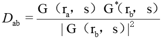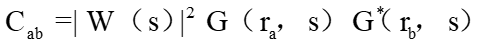 在频率域中,相邻的两个点ra、rb的地震记录分别为W(s)G(ra,s)、W(s)G(rb,s),其中,W(s)是频率域上的震源函数,G(ra,s)、G(rb,s)分别对应接收点ra、rb地震响应的格林函数,他们在频率域的互相关公式为: