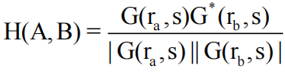 在反褶积干涉去除了震源影响因子的同时,如果再将检波点A与检波点B所接收到的所有信号综合考虑,就可将反褶积公式(2)中的分母稍加改变,写成如下形式即互相干干涉: